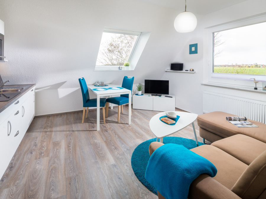 Tillmanns Pusteblume ist ein stilvoller Rückzugsort für alle, die Ruhe, Klarheit und norddeutsche Gelassenheit schätzen. Die geschmackvoll eingerichtete Ferienwohnung im Dachgeschoss (1. Stock) in Norddeich bietet auf rund 40 qm ein harmonisches Zusammenspiel aus modernem Komfort und wohnlicher Atmosphäre. Helle Räume und sorgfältig ausgewählte Details schaffen einen Ort, an dem Ankommen leichtfällt.